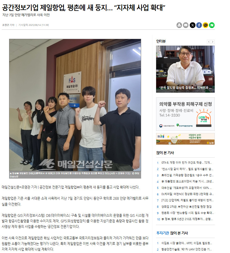 공간정보기업 제일항업, 평촌에 새 둥지… “지자체 사업 확대”